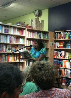 After a brief talk, we were treated to Mitali reading an excerpt from the book. Then it was Q&A time. I always wish I could think of good questions in these situations. Fortunately other people had more of a clue then me, and asked great questions. When asked how her faith influences her writing, Mitali talked about how she tries to reconcile her personal wish to put others before herself, to pursue and be ever mindful about issues pertaining to justice and compassion, while working in a profession which basically requires self-promotion if she hopes to succeed. She likes writing about young teens, because she thinks it's a fantastic age to be. (I had to throw myself in the way-back machine when thinking about that one. In general, I think she's correct!) And she shared her ambition to write a funny book. She also reiterated at many points during the evening, the importance--the power even--of stories. It's a timeless truth which cannot be repeated often enough (as any librarian will tell you!) Stories can influence and mobilize whole populaces, as well as provide comfort on an individual level.